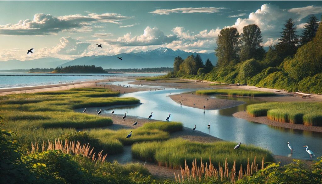 Boundary Bay Regional Park is a haven for outdoor lovers and one of Delta’s most popular natural attractions. Located on the shores of Boundary Bay, this park is renowned for its stunning coastal scenery, peaceful walking trails, and opportunities for wildlife viewing. The area is a critical stopover for migratory birds along the Pacific Flyway. It is a favorite destination for birdwatchers who can spot species such as bald eagles, snowy owls, and sandpipers. The park also features bike-friendly trails, picnic areas, and access to the sandy beaches of Centennial Beach. Whether you’re walking along the shoreline, cycling through serene pathways, or simply enjoying the view of Mount Baker in the distance, Boundary Bay is an ideal place to unwind and connect with nature.