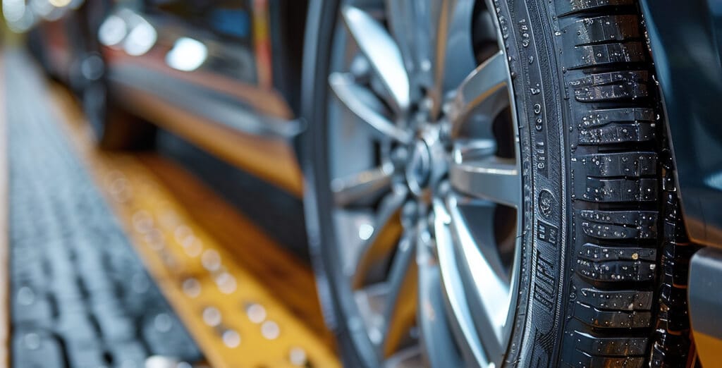 We perform an alignment check to ensure your wheels are correctly aligned. Proper alignment is essential for optimal tire performance and longevity. Misaligned wheels can cause uneven tire wear and affect vehicle handling. If necessary, we make precise adjustments to the alignment to match factory specifications.
